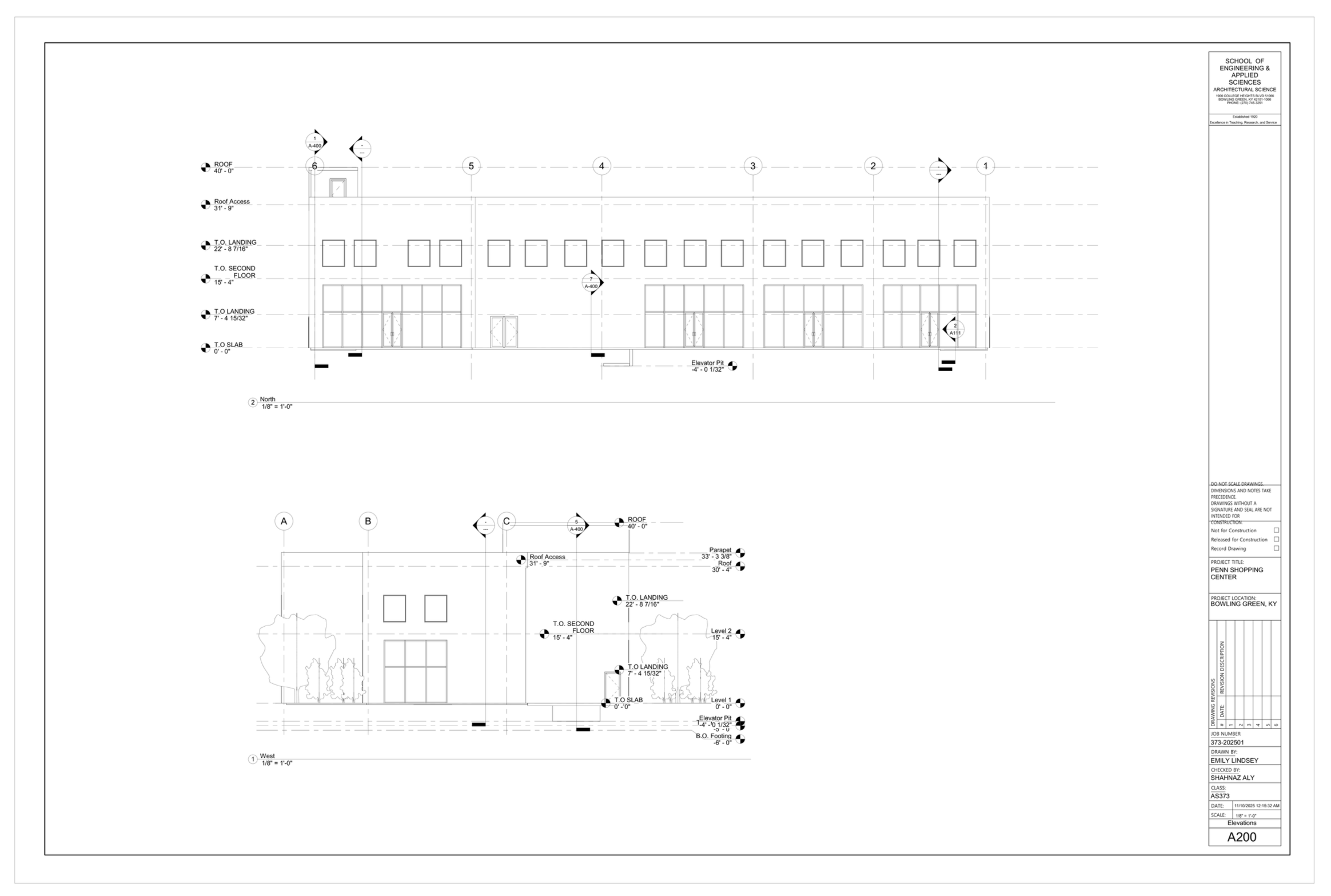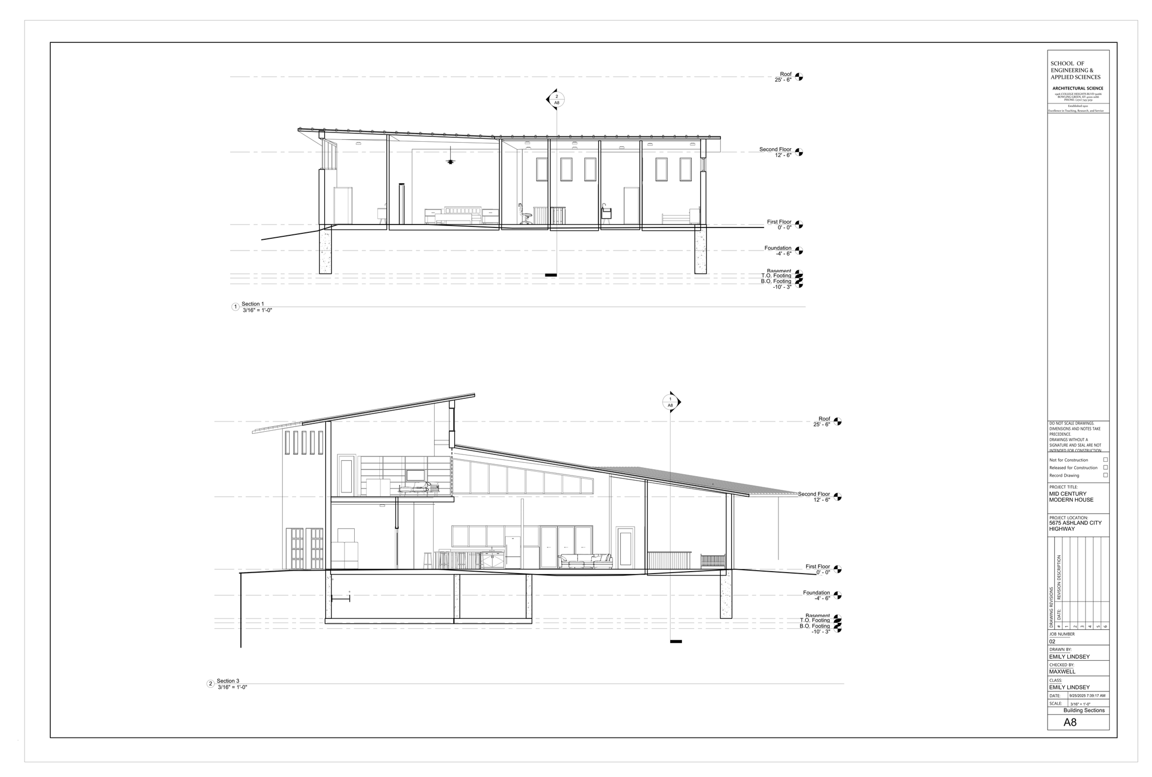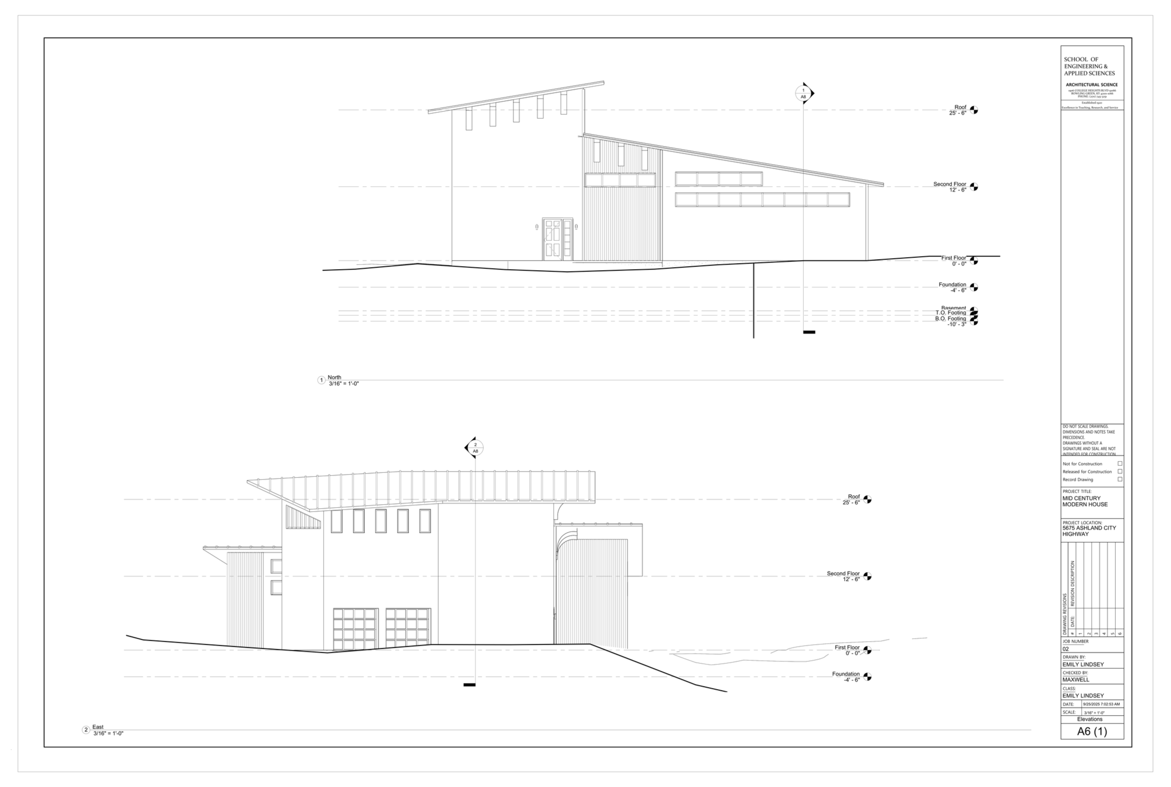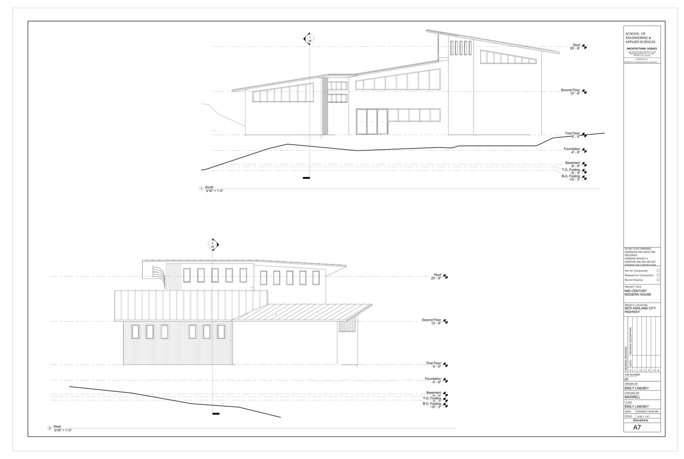 The elevations show the front and side of the house. Showcasing the siding and wood shingles that I chose for the exterior of the single family home.