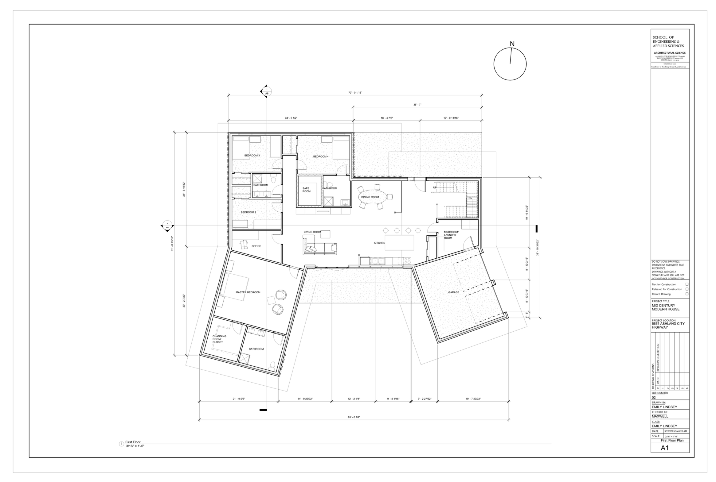 When we first started to learn Revit, my professor made it a priority to develop projects that could be showcased in a portfolio. For one of these projects, we were instructed to take a previous project made in AutoCAD and bring it into Revit. I chose to take the residential house that I spent a semester developing into Revit. In doing so, I was able to develop the house and learn the skills that I already knew in AutoCAD. While working with the house, I was able to realise certian problems that had initially escaped my notice. I refined my design to a point that I feel represents the current point in my revit skills.